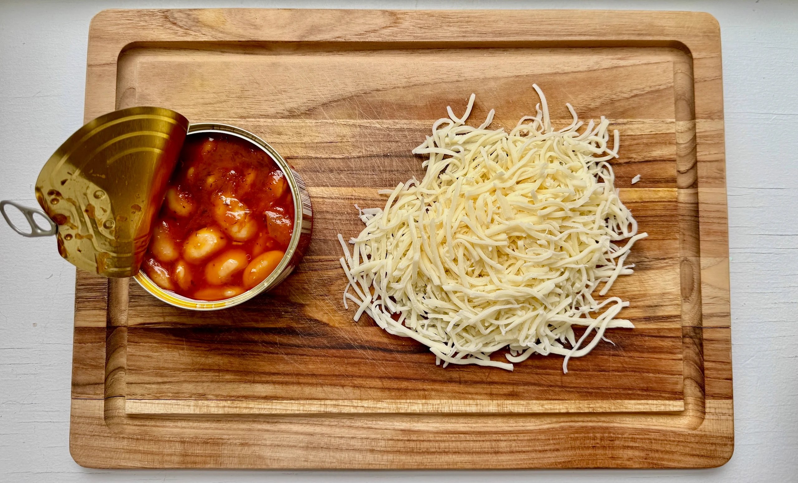1 can of white or gigante beans in tomato sauce (I used these, but any brand works! Just make sure it’s savory sauce — not sweet, like Heinz baked beans)